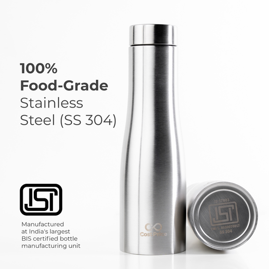 Cost Price | Stainless Steel Water Bottle 1 litre | Food grade SS - 304 (BIS certified) | Water bottle for Office, Home, Kids and Outdoors | Light, Durable and Leak-proof | Single Wall (4)